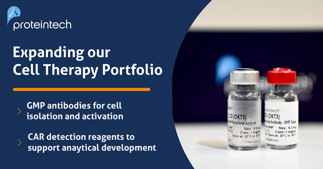 | Proteintech continues to expand its cell and gene therapy portfolio, with a strong focus on GMP-grade antibodies and CAR detection reagents, complementing one of the largest GMP-grade cytokine and growth factor portfolios available. Proteintech's CAR detection reagents enable an accurate assessment of CAR expression and functionality, from early discovery through lot-release quality testing of manufactured CGT products. Their GMP antibodies are engineered for consistency, traceability, and phase-appropriate use in key CGT workflows, including cell isolation and activation. Together, these solutions help minimize risk as programs progress toward the clinic. Partner with Proteintech for reliable reagents purpose-built for CGT success. |