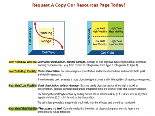 Worthington’s Tissue Dissociation Guide describes standard lab procedures; offers a logical experimental approach for establishing an optimal cell isolation protocol; and lists many tissue-specific references to aid development of an effective method. Available online, this technical guide covers cell isolation theory, cell isolation techniques and optimization strategies with additional resources. |